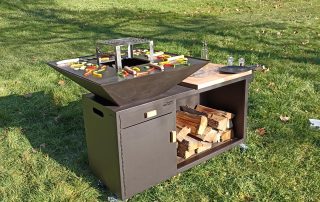 Le brasero-Plancha-Barbecue est synonyme de modernité et de design de part sa conception et ses fonctionnalités qui en font un objet de décoration ainsi qu’une cuisine extérieur complète. Il qui offre toutes les saveurs de la préparation au feu de bois, en conservant une grande liberté de cuisson.
